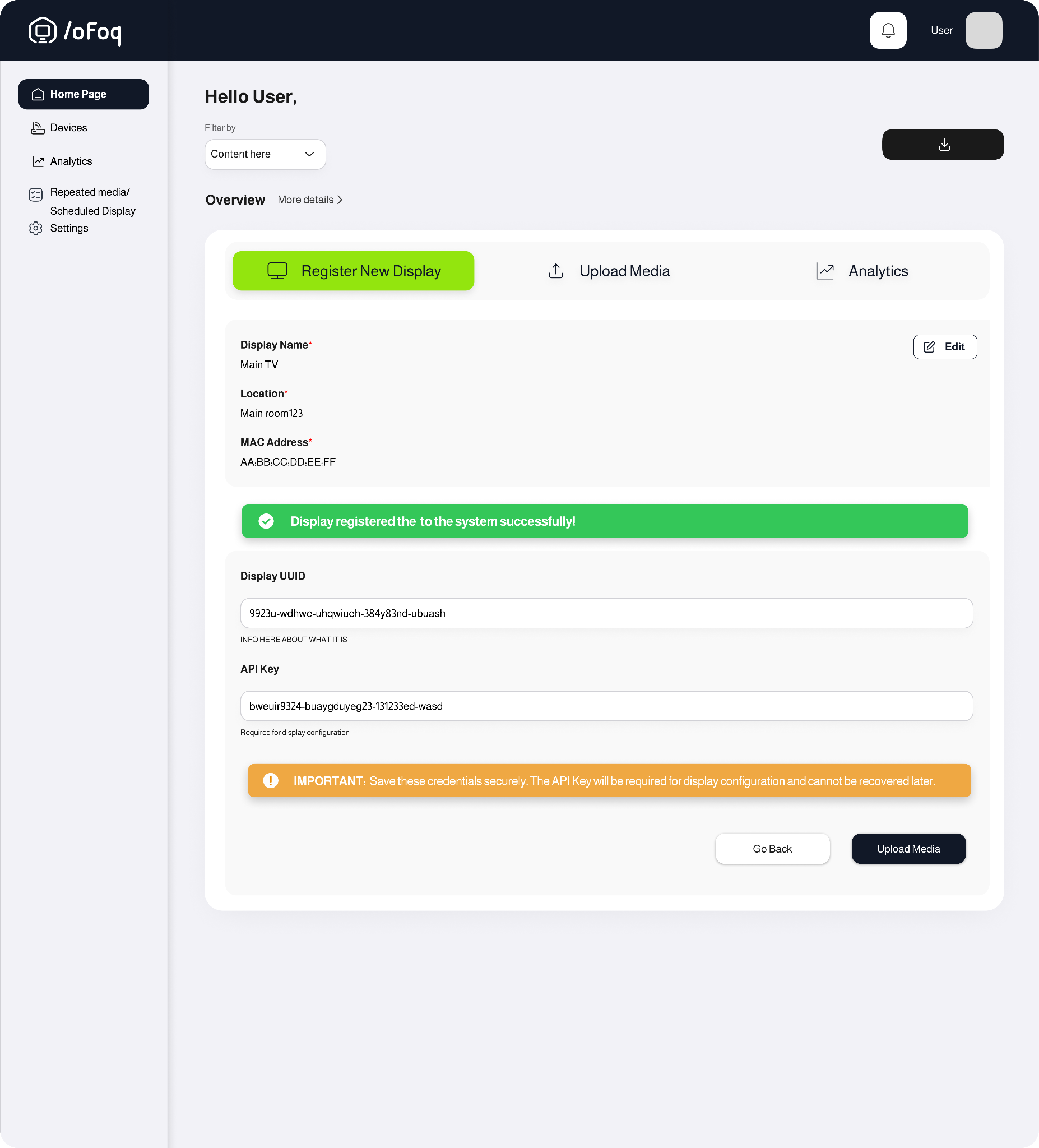 Easily register and configure new displays with unique identifiers and location mapping.